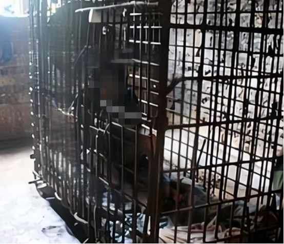 铁笼的缝隙很窄,只有手指粗细,无法看清里面到底有什么。